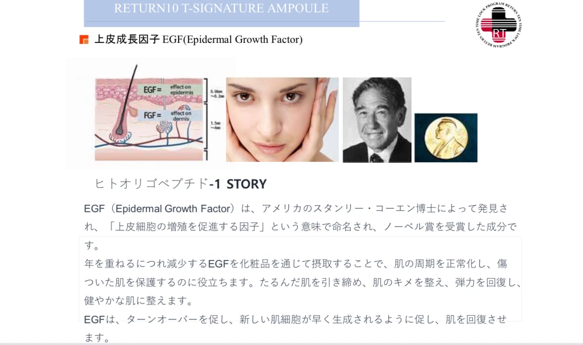 1986年ノーベル医学賞受賞成分。肌細胞の再生をサポートし、ターンオーバーを促進。